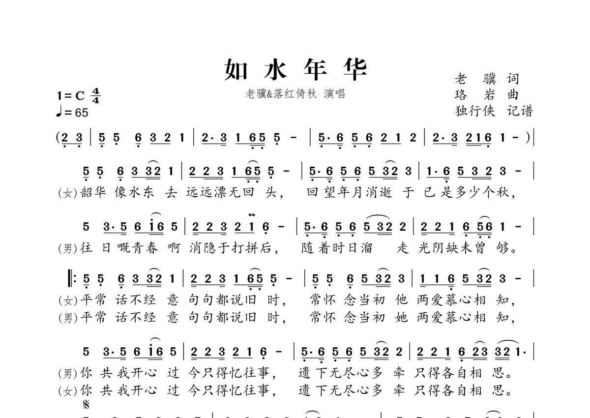 如水年华(粤语版)简谱 - 老骥、落红倚秋演唱