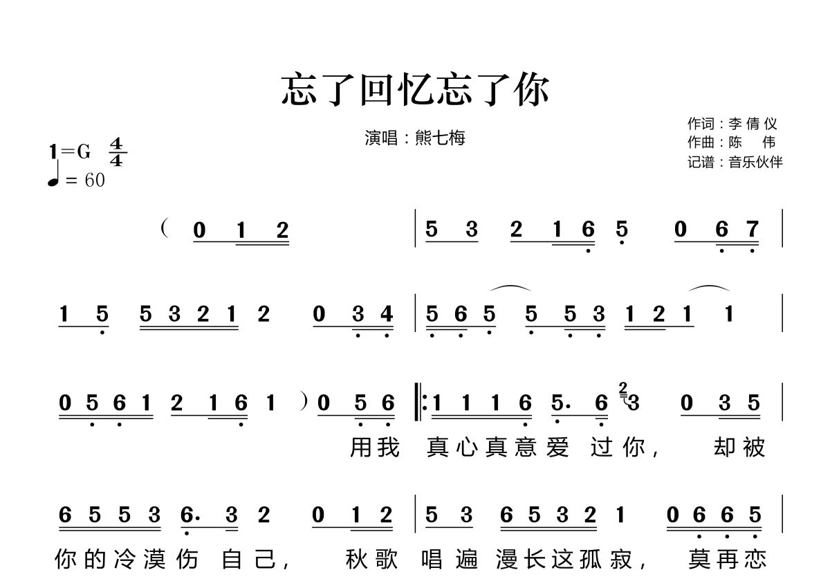 忘了回忆忘了你简谱 - 熊七梅演唱