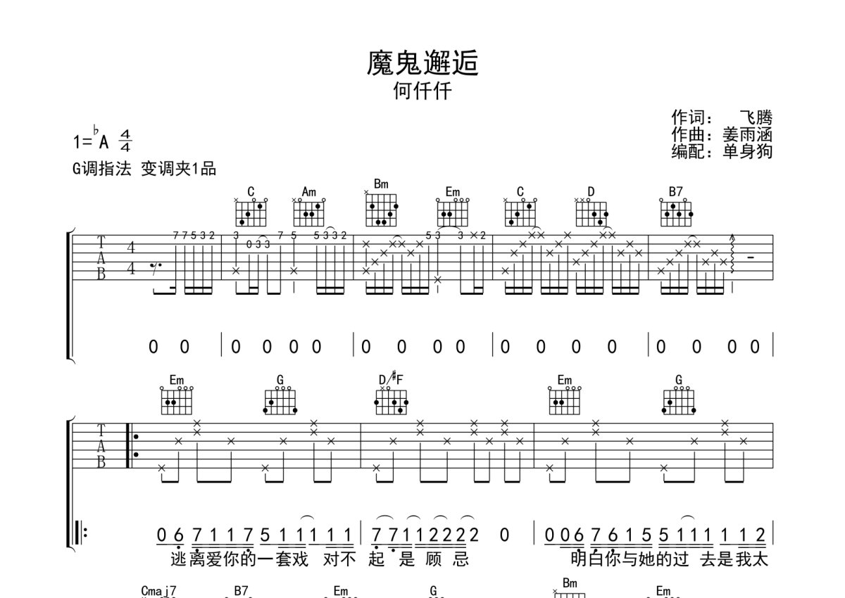 何仟仟《魔鬼邂逅》吉他谱 - G调弹唱六线谱