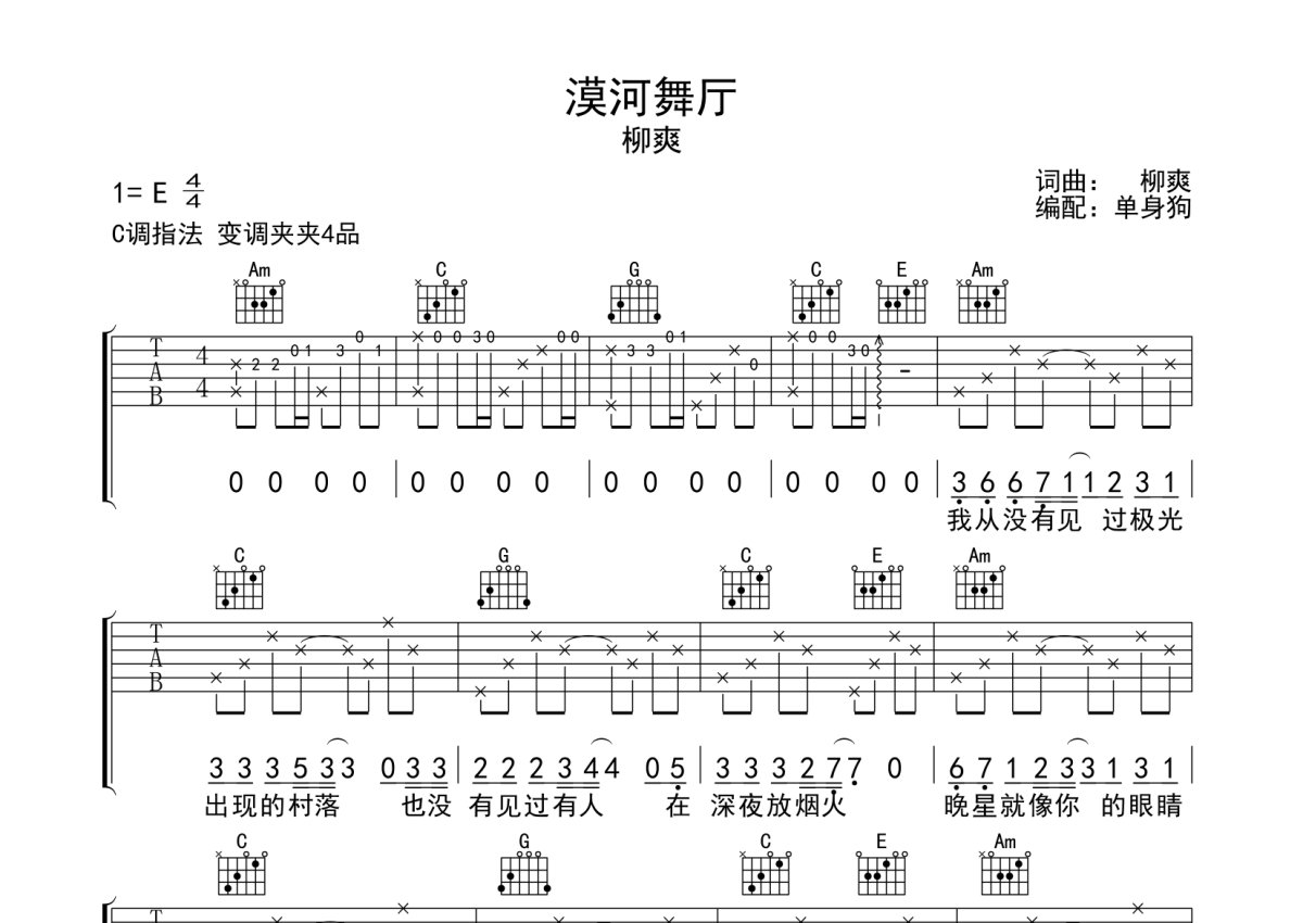 柳爽《漠河舞厅》吉他谱 - C调弹唱六线谱