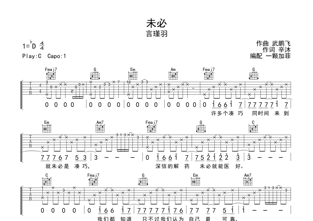 未必吉他谱 - 言瑾羽演唱 - C调弹唱六线谱