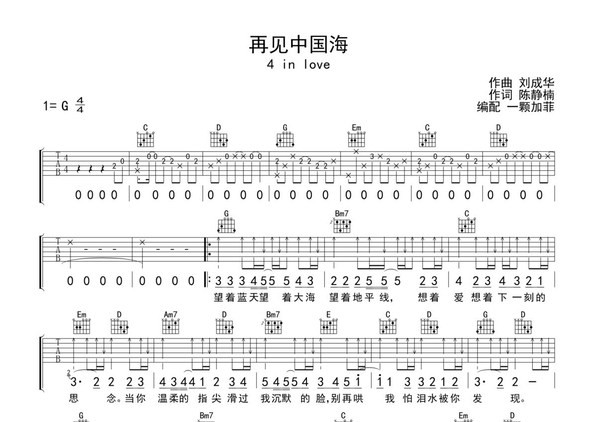 4 in love《再见中国海》吉他谱 - G调弹唱六线谱