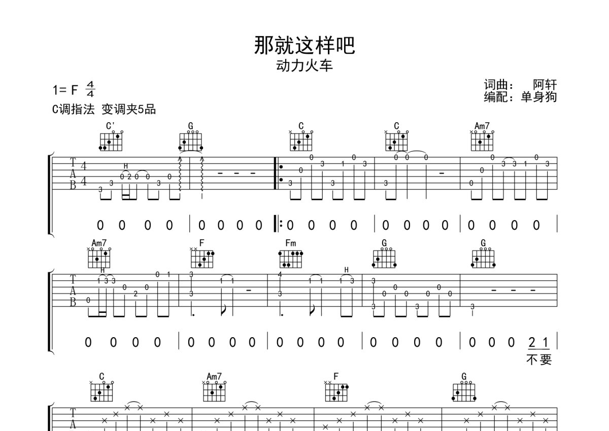 动力火车《那就这样吧》吉他谱 - C调弹唱六线谱