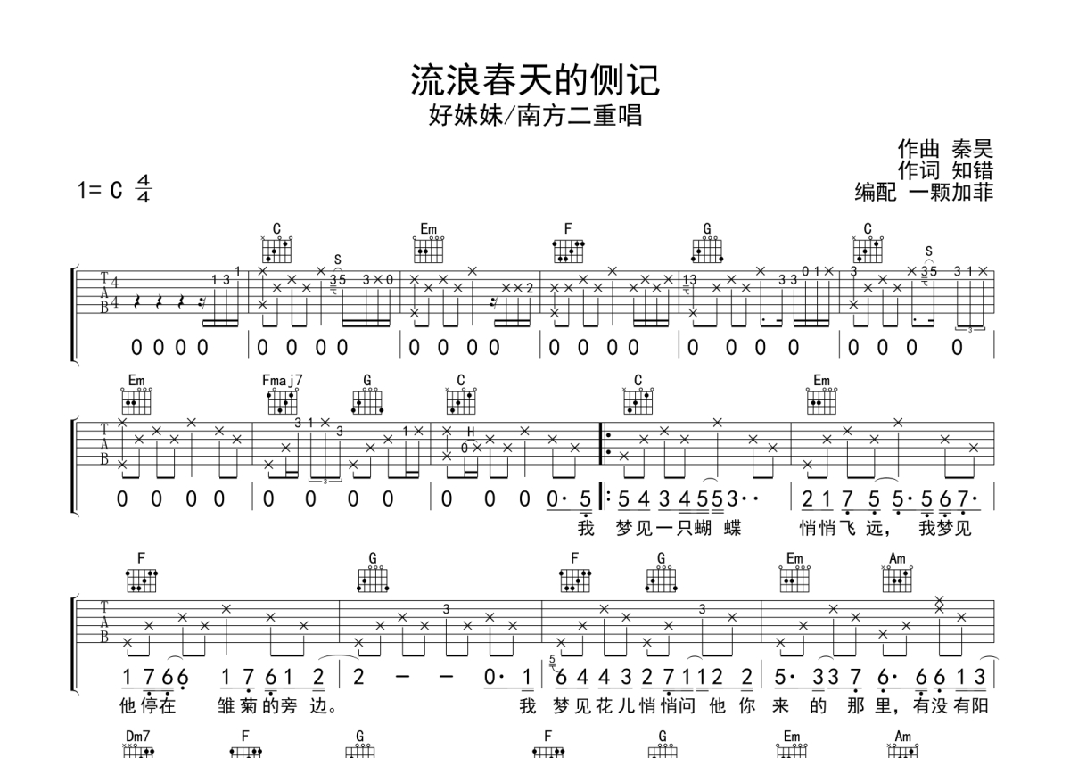 好妹妹乐队《流浪春天的侧记》吉他谱 - C调弹唱六线谱