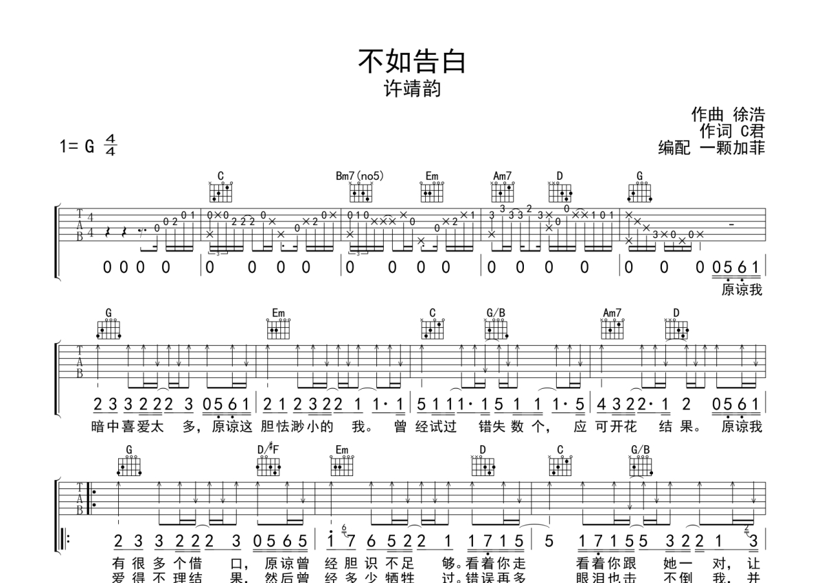 许靖韵《不如告白》吉他谱 - G调弹唱六线谱