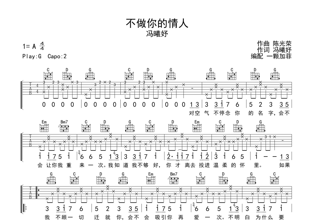冯曦妤《不做你的情人》吉他谱 - G调弹唱六线谱