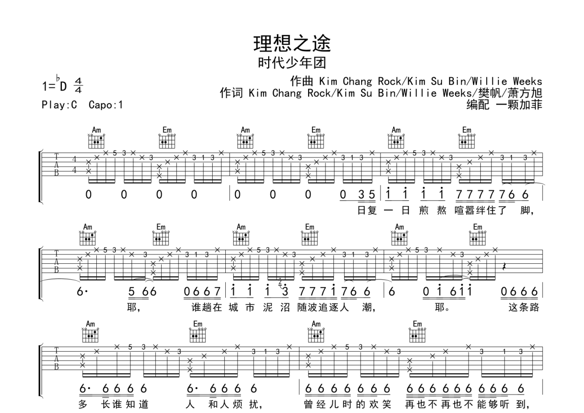 时代少年图《理想之途》吉他谱 - C调弹唱六线谱