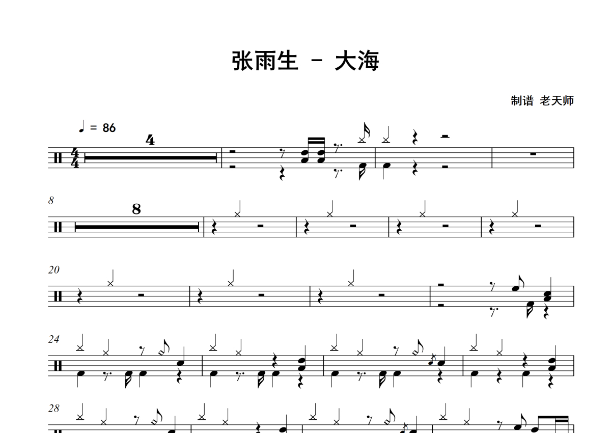 张雨生《大海》架子鼓谱