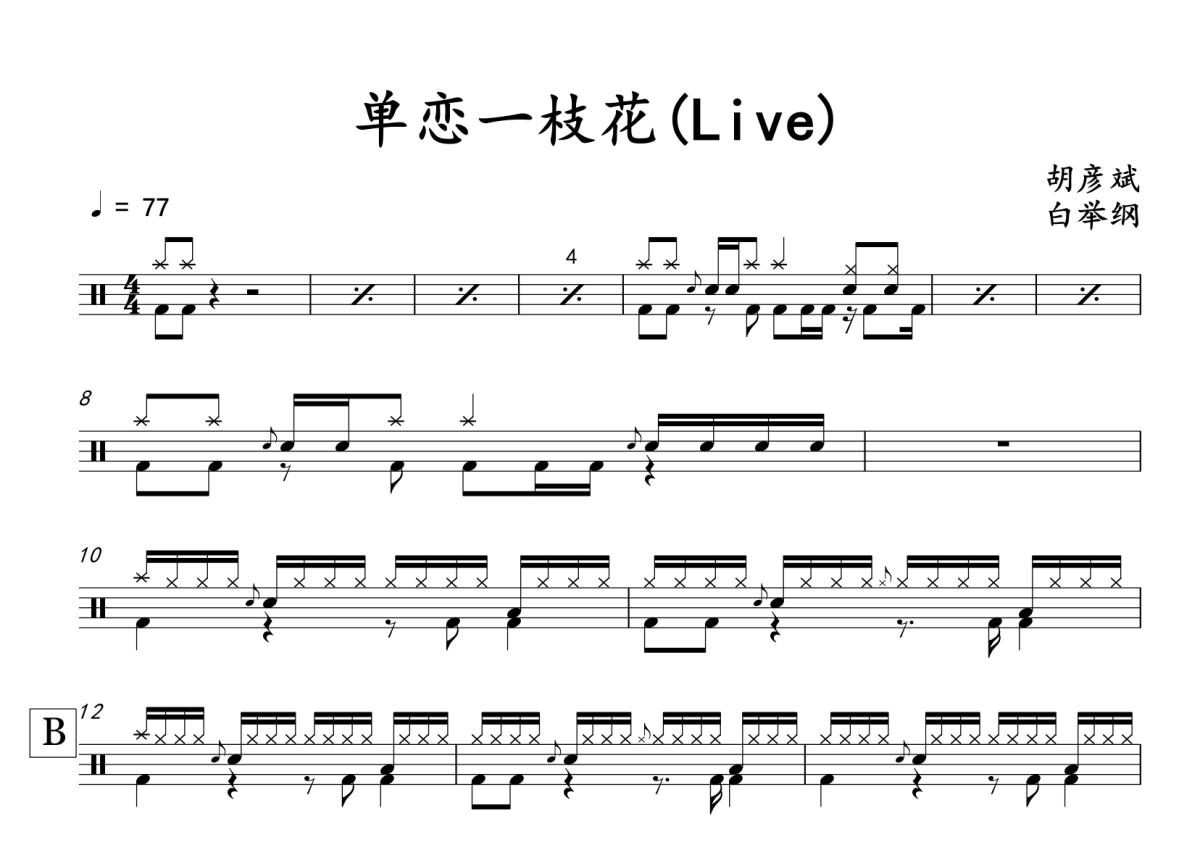 胡彦斌 白举纲《单恋一枝花》架子鼓谱