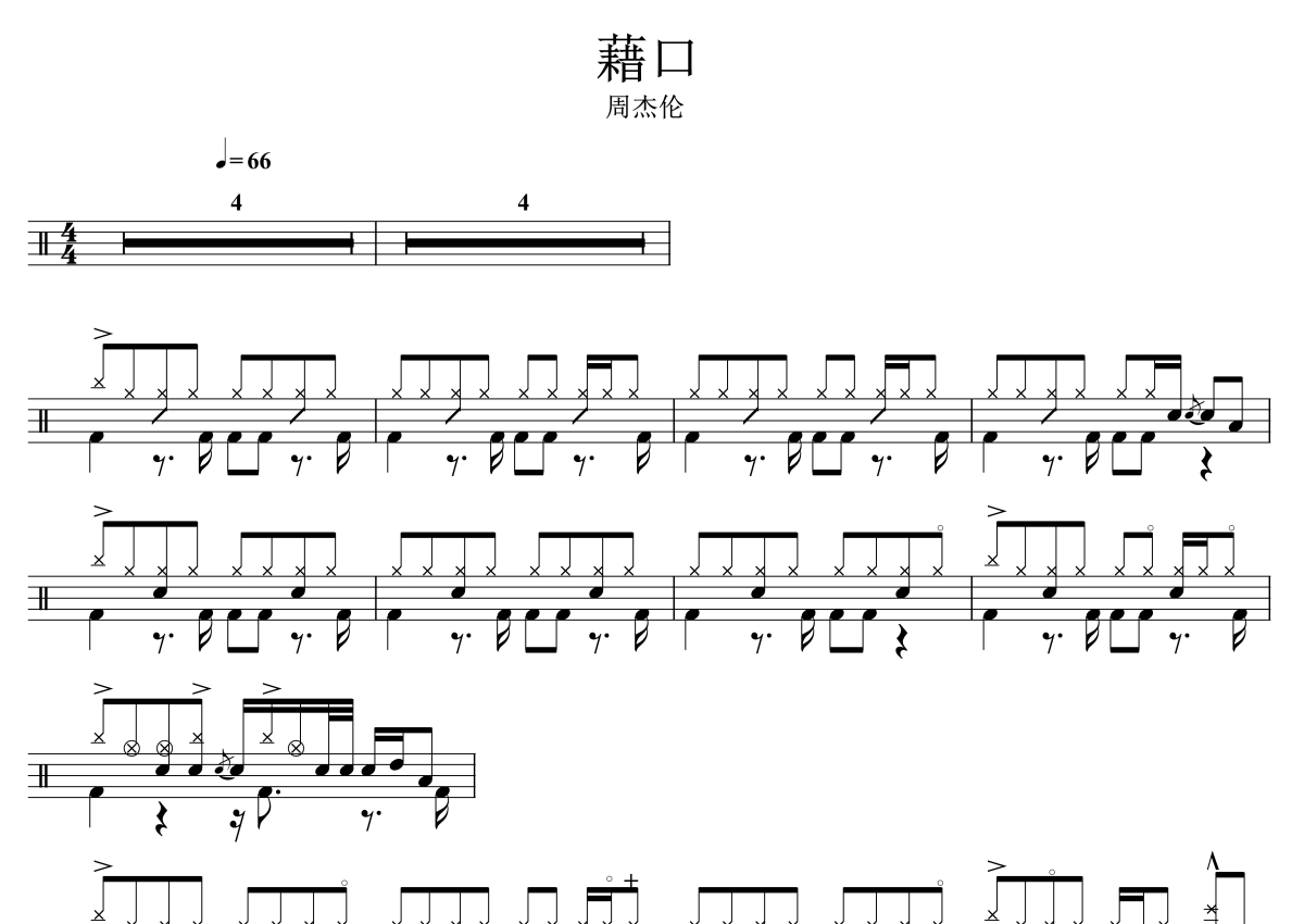 周杰伦《借口》架子鼓谱