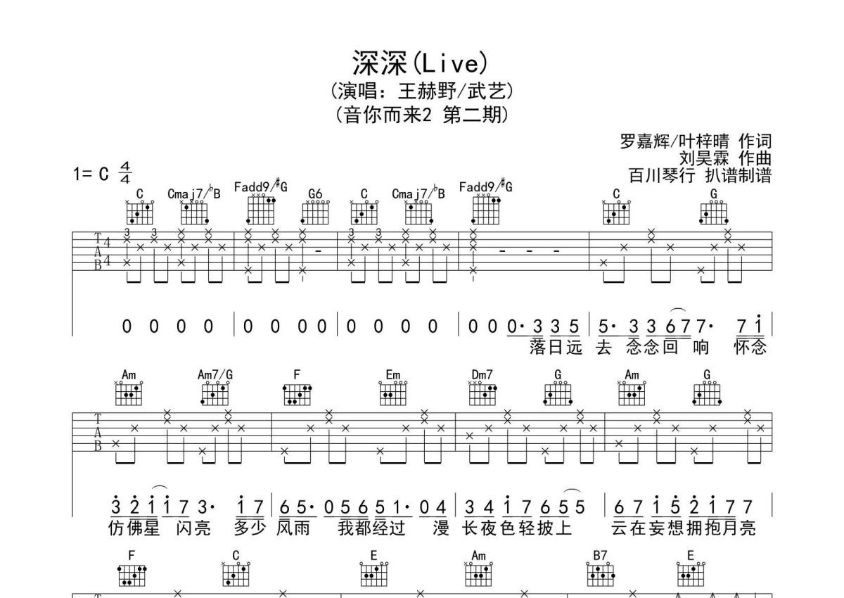 王赫野/武艺《深深》吉他谱 - C调弹唱六线谱
