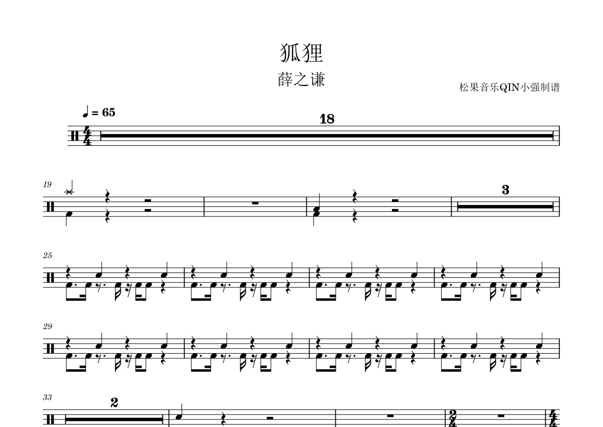 《狐狸》是薛之谦演唱的一首歌曲,拍号为4/4拍,这份架子鼓谱共有一张高清图谱,图谱由 @松果音乐QIN小强 编配上传,图谱使用五线谱编配,使用这份狐狸架子鼓谱,你将能够轻松地敲打出这首薛之谦的狐狸,快来尝试吧。薛之谦《狐狸》(电影《二代妖精之今生有幸》推广曲)。