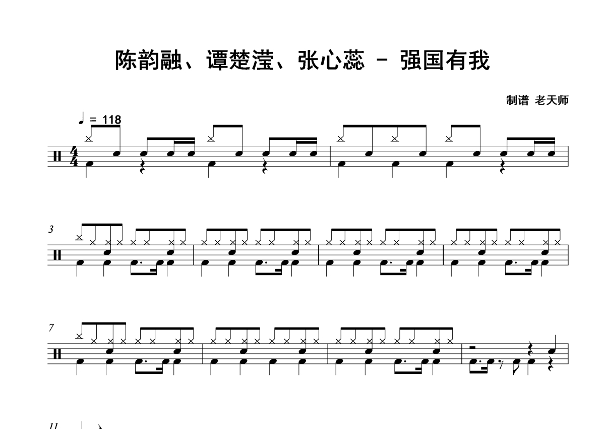 陈韵融、谭楚滢、张心蕊《强国有我》架子鼓谱