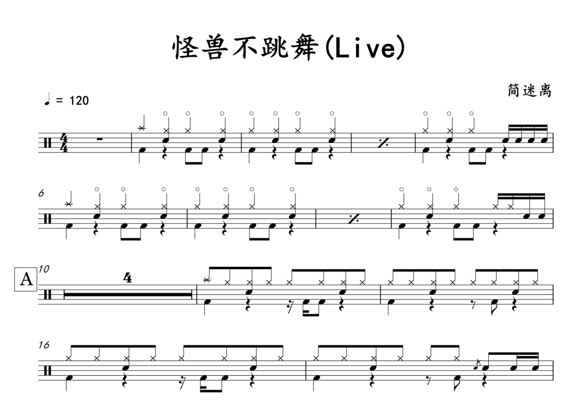 简迷离《怪兽不跳舞(Live)》架子鼓谱