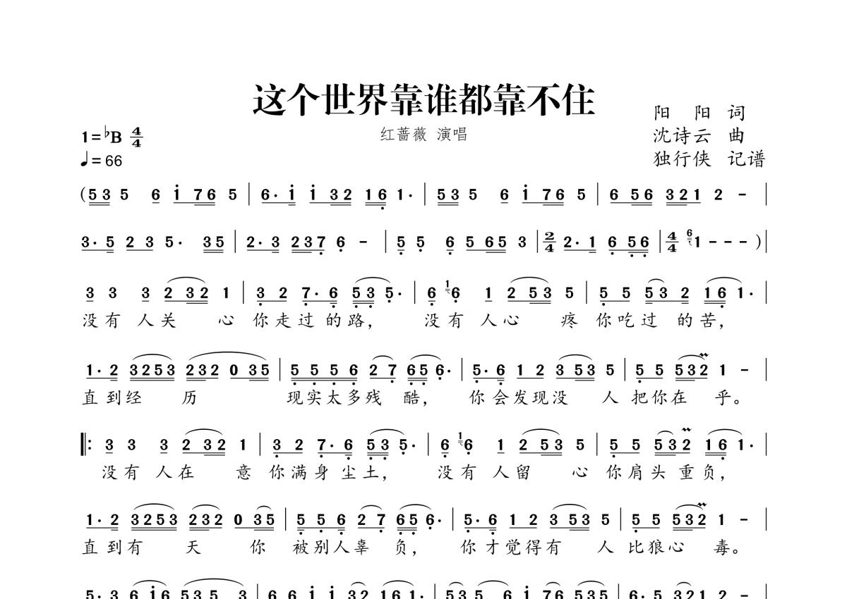 这个世界靠谁都靠不住简谱 - 红蔷薇演唱