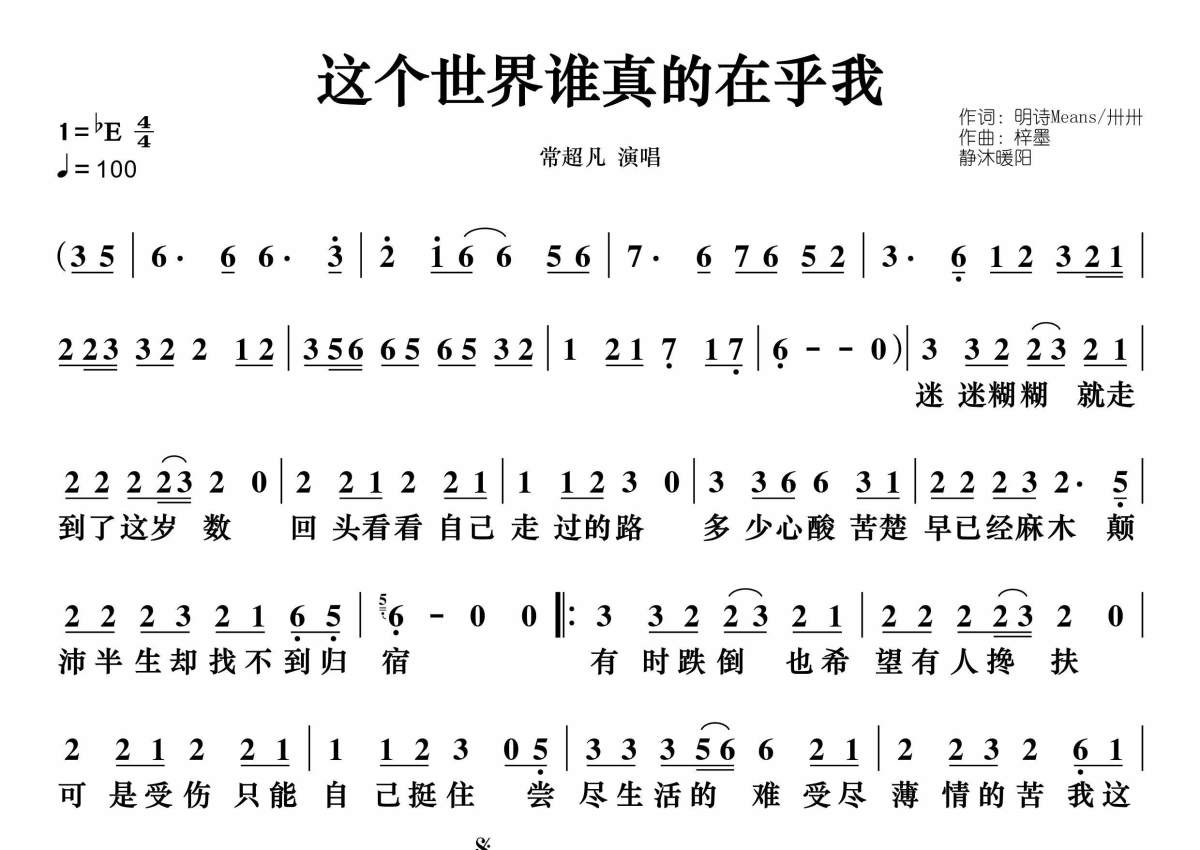 这个世界谁真的在乎我简谱 - 常超凡演唱