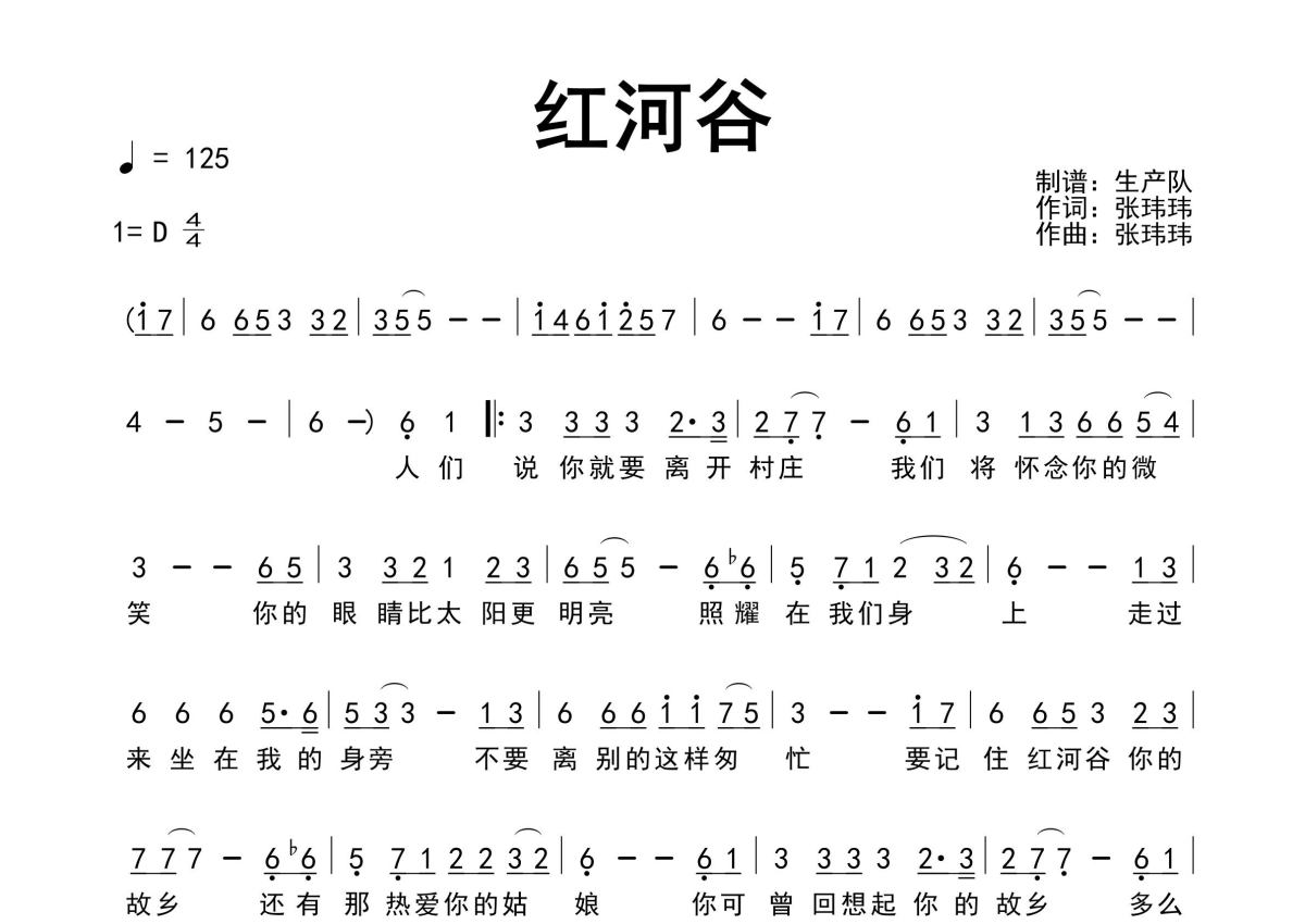 《红河谷(小调版)》是小调版演唱的一首歌曲,原版简谱,拍号为4/4拍,歌曲速度为每分钟125拍,这份简谱共有一张高清图谱,图谱由 @生产队 编配上传张玮玮&郭龙演唱的歌曲《红河谷(小调版)》原版简谱,精准的前奏、间奏solo编配,精编完美版。