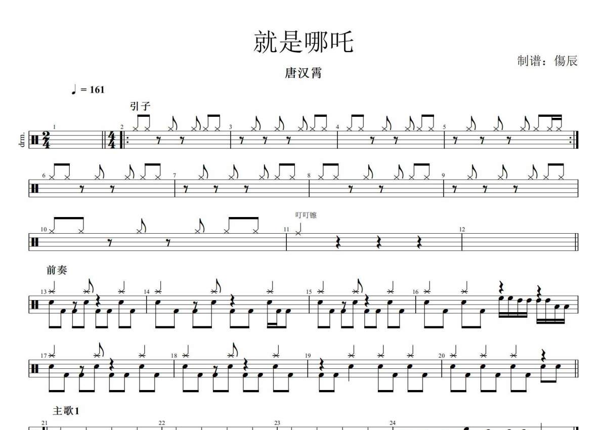 《就是哪吒》是唐汉霄演唱的一首歌曲,这份架子鼓谱共有三张高清图谱,图谱由 @打鼓的蟹老板 编配上传,图谱使用五线谱编配,使用这份就是哪吒架子鼓谱,你将能够轻松地敲打出这首唐汉霄的就是哪吒,快来尝试吧。