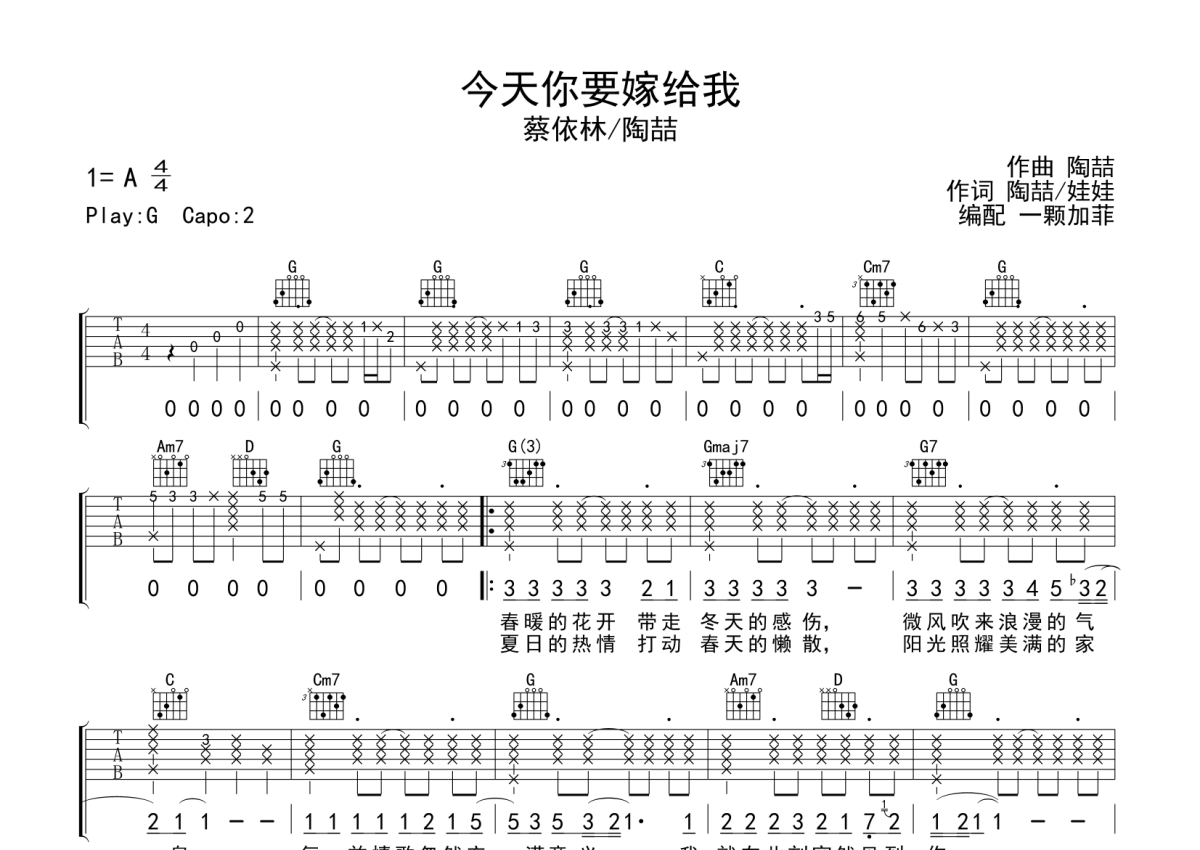 今天你要嫁给我吉他谱 - 陶喆 /蔡依林演唱 - G调弹唱六线谱