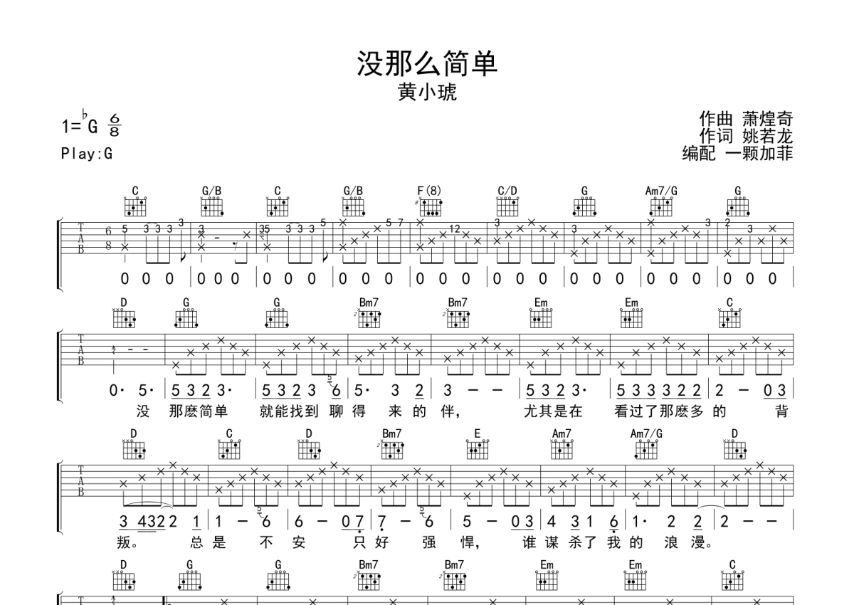 没那么简单吉他谱 - 黄小琥演唱 - G调弹唱六线谱