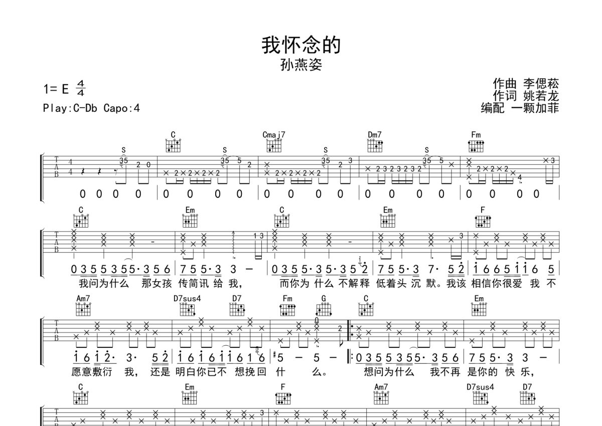 我怀念的吉他谱 - 孙燕姿演唱 - C调弹唱六线谱