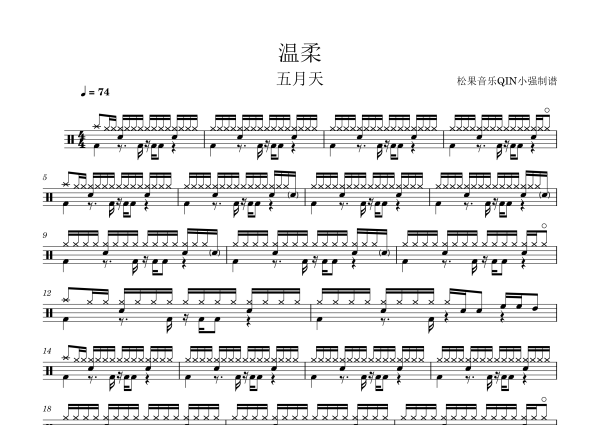 《温柔》架子鼓谱 - 五月天