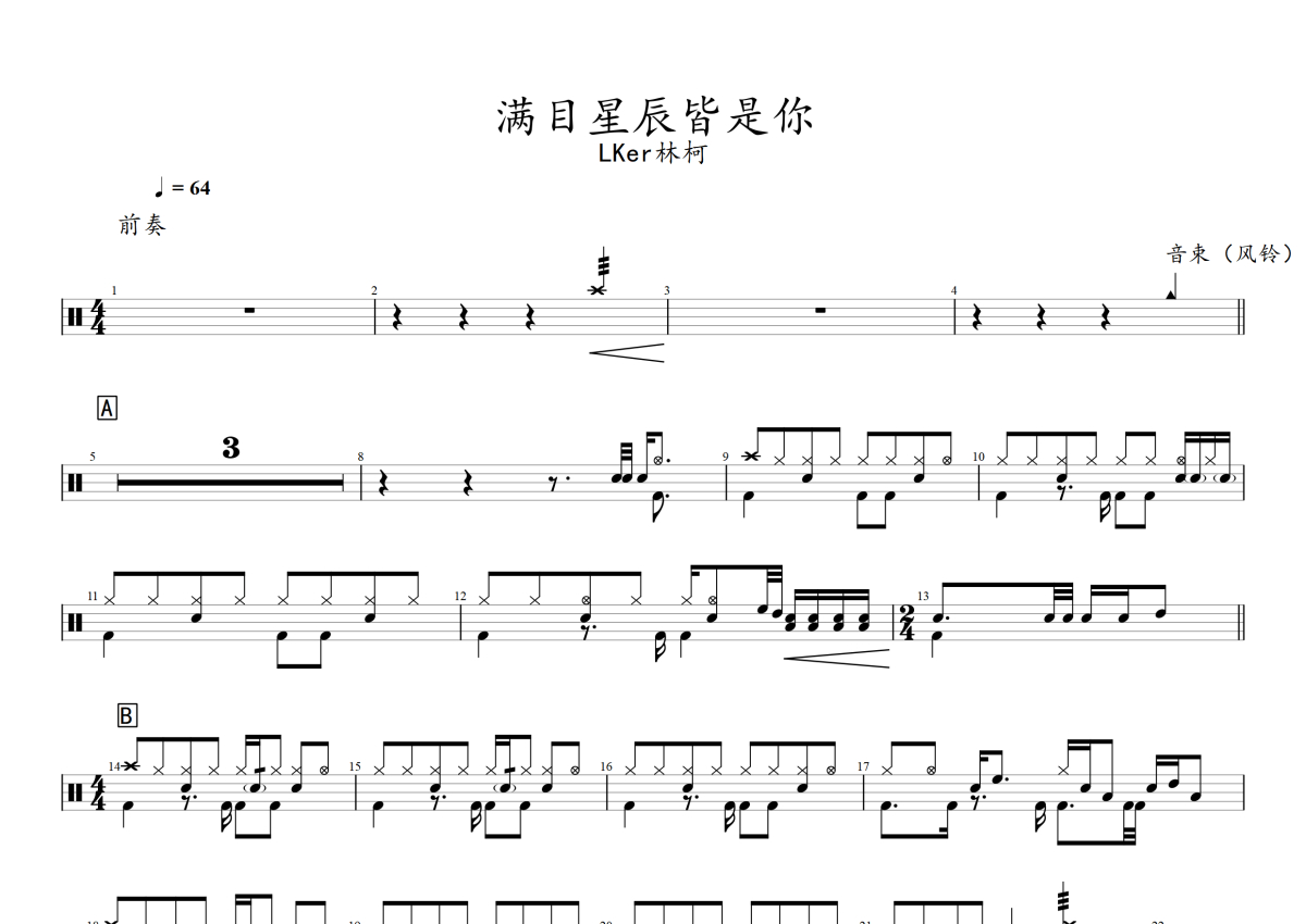 LKer林柯《满目星辰皆是你》架子鼓谱