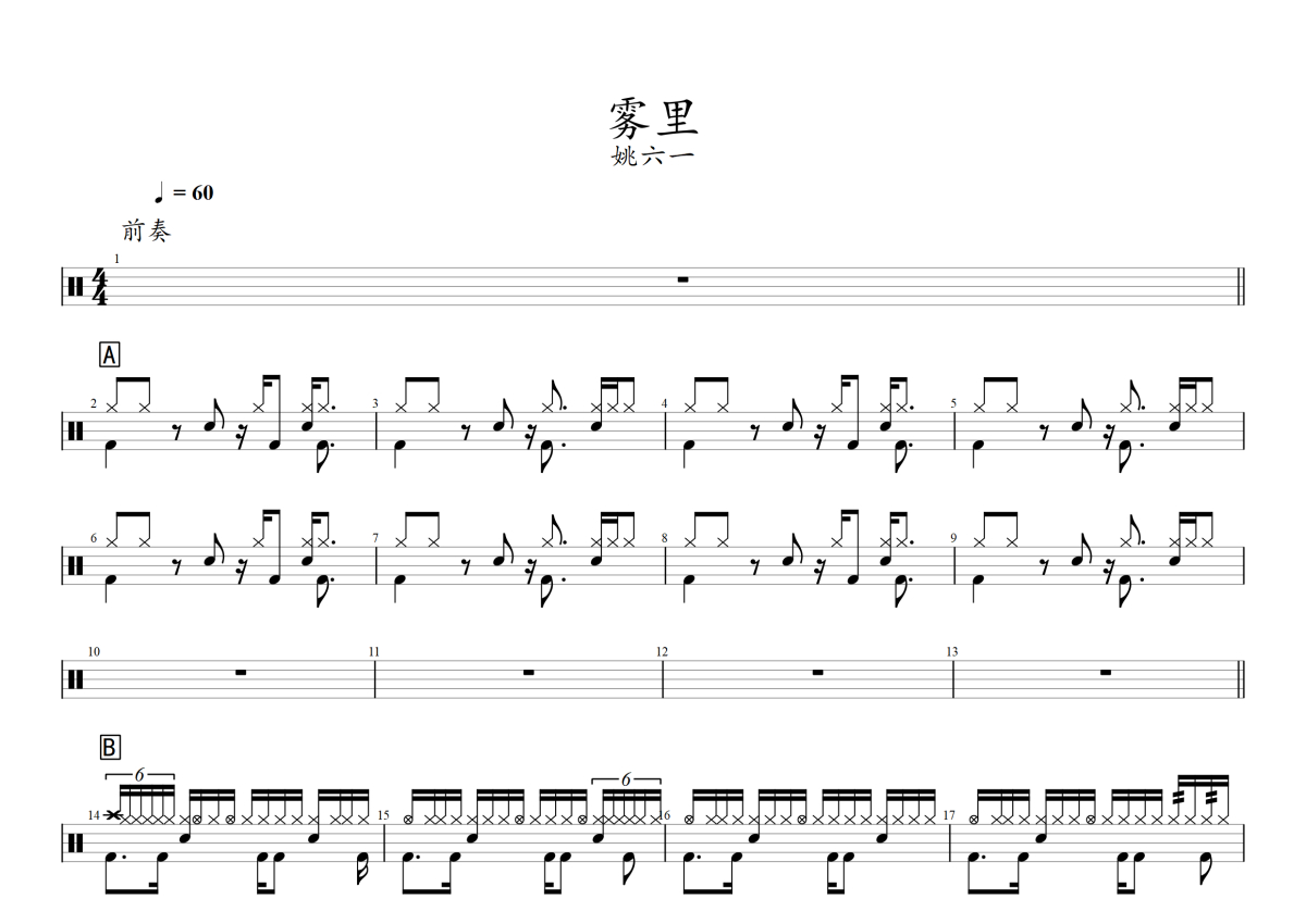 雾里架子鼓谱 - 姚六一演唱