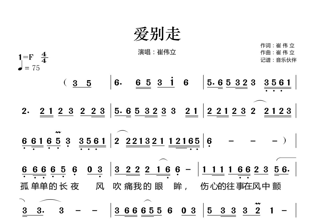 爱别走简谱 - 崔伟立演唱