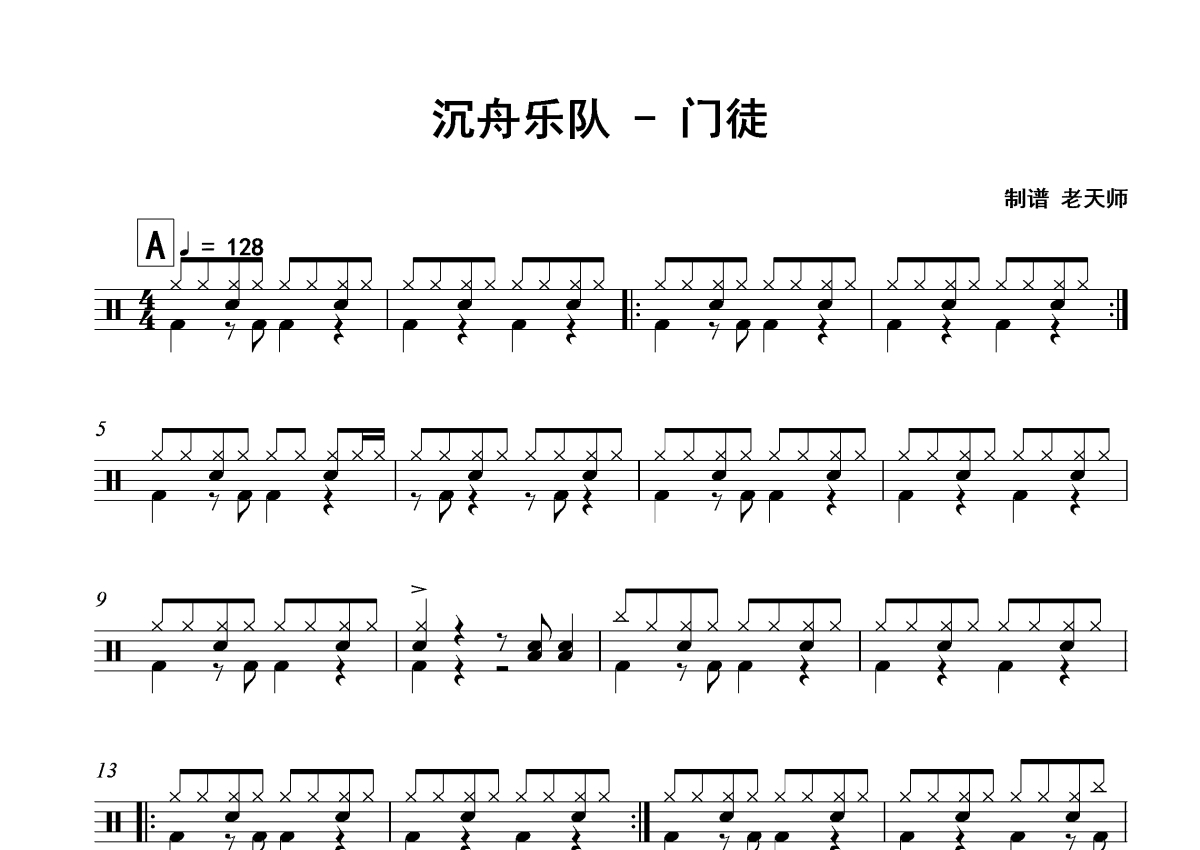 沉舟乐队《门徒》架子鼓谱
