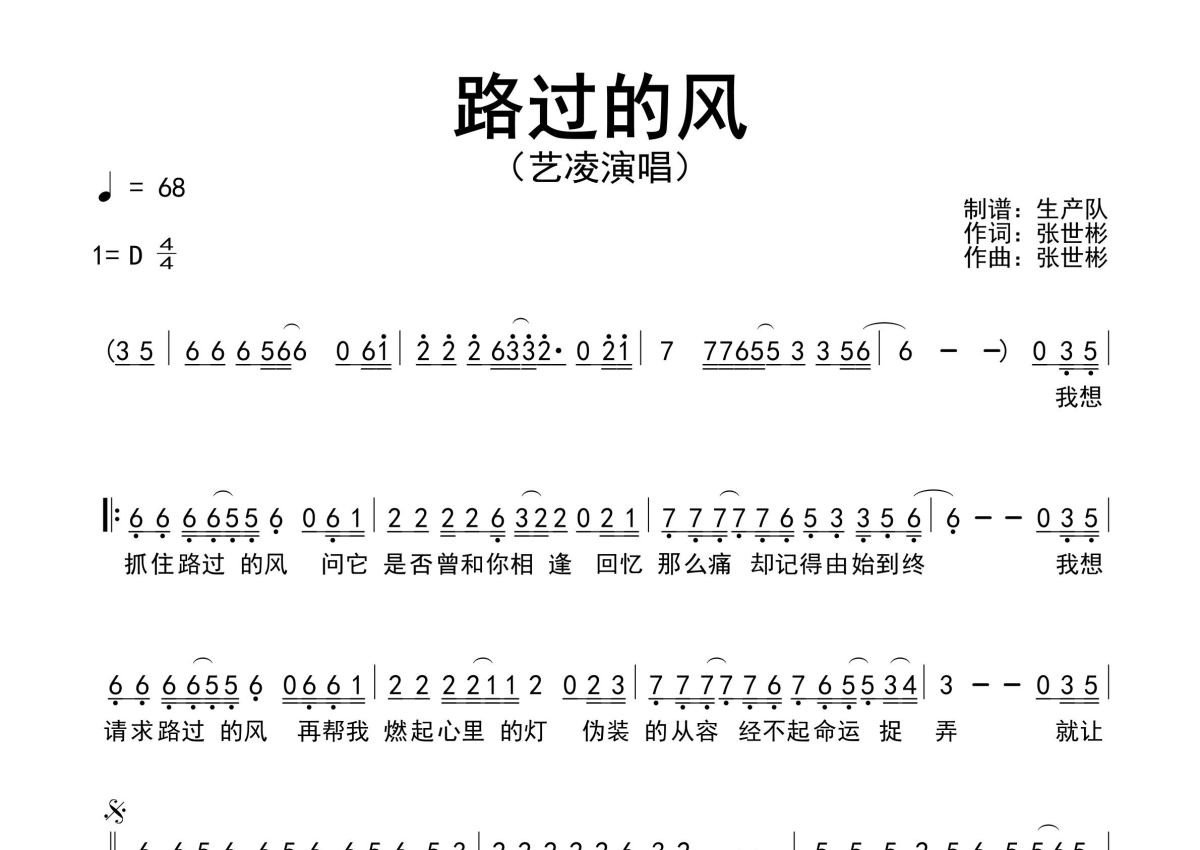 《路过的风》是艺凌演唱的一首歌曲,原版简谱,拍号为4/4拍,歌曲速度为每分钟68拍,这份简谱共有一张高清图谱,图谱由 @生产队 编配上传艺凌演唱的歌曲《路过的风》原版简谱,精准的前奏、间奏、尾奏solo编配,精编完美版,值得推荐!。