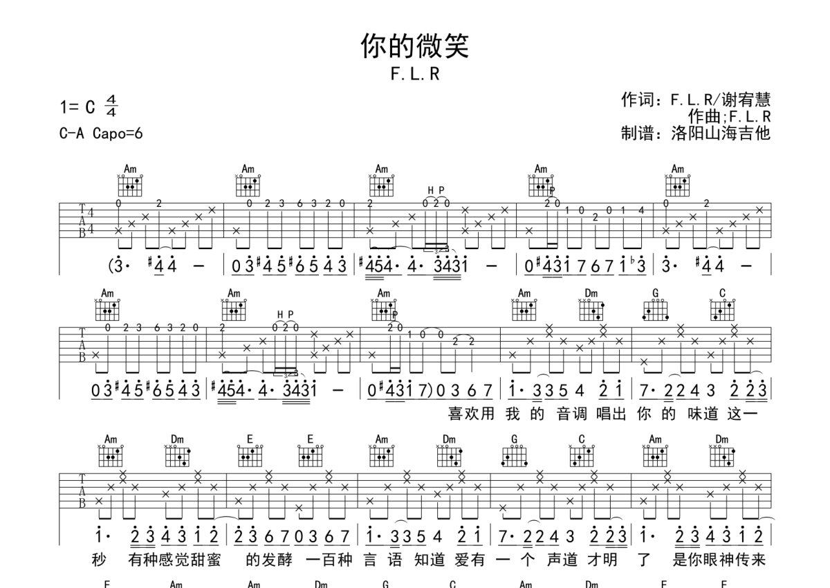 洛阳山海吉他,全网资深制谱师。吉他谱专栏持续更新!三年更新九百余首,质量保证!