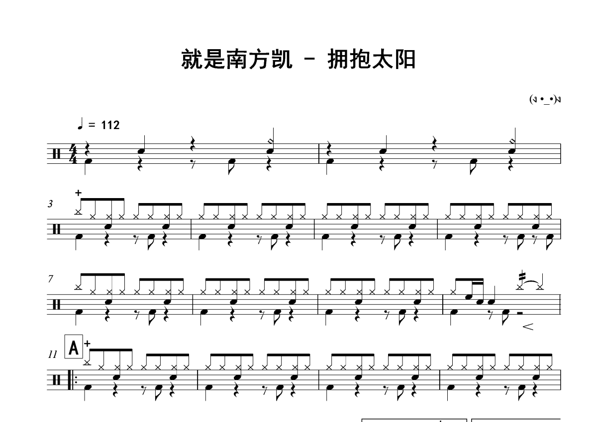 就是南方凯《拥抱太阳》架子鼓谱