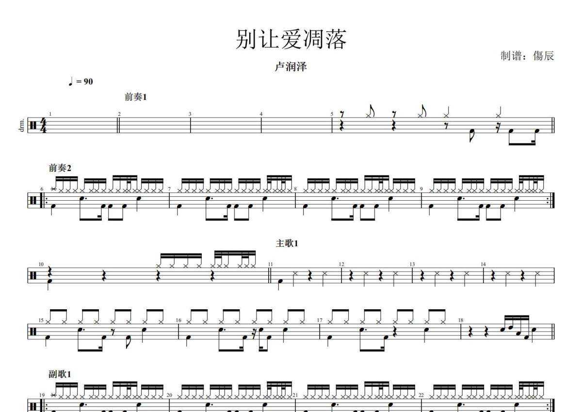 卢润泽《别让爱凋零》架子鼓谱