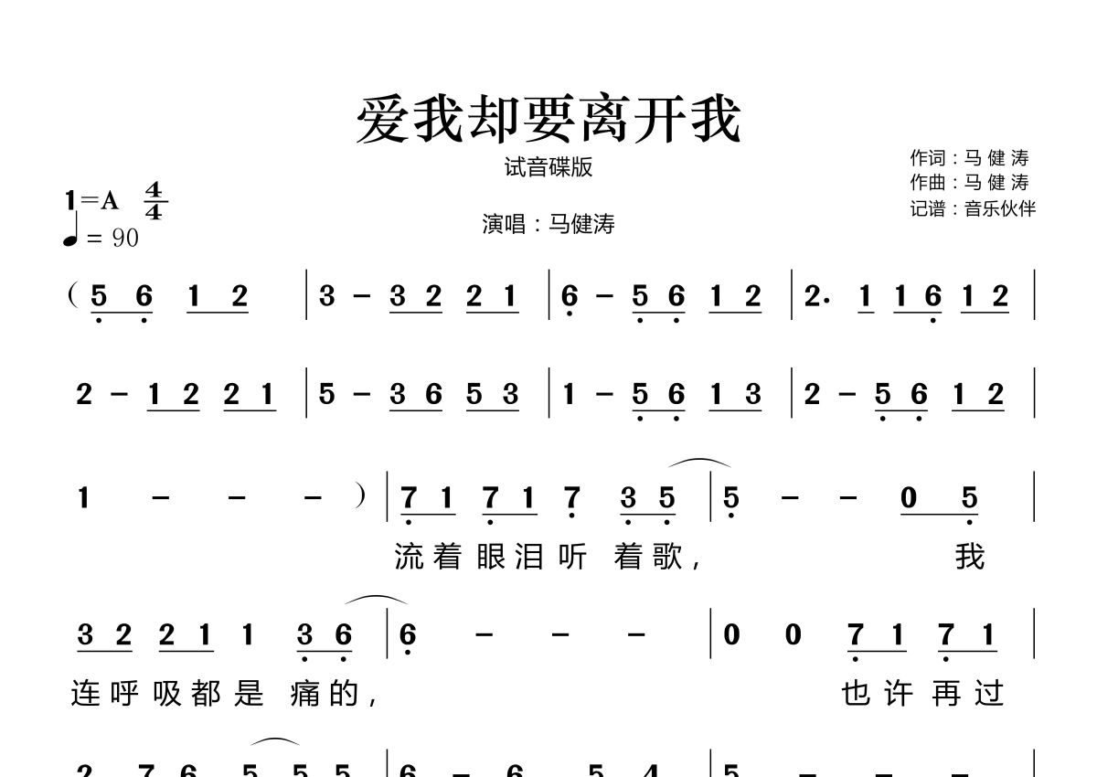 爱我却要离开我简谱 - 马健涛演唱