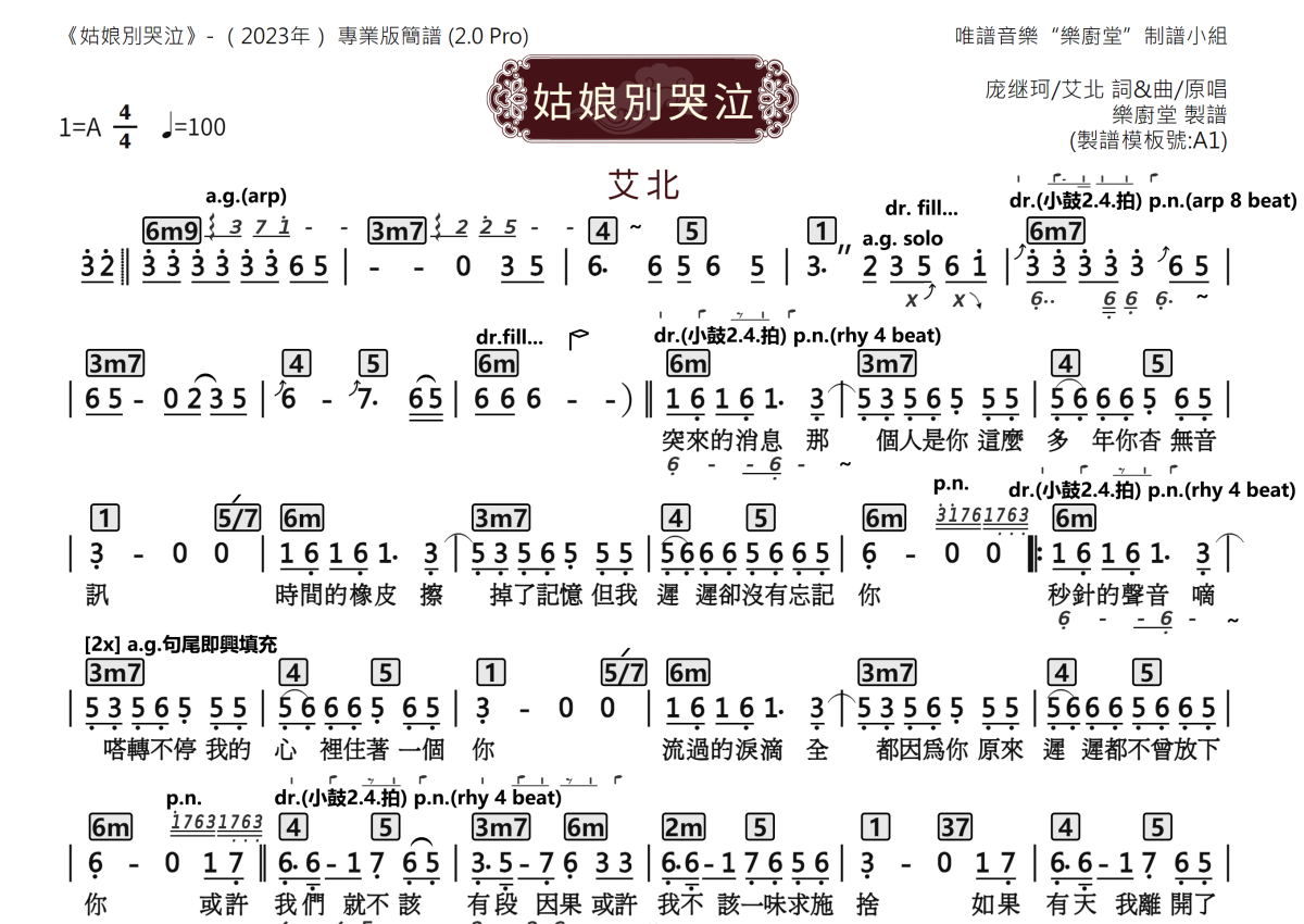 艾北《姑娘别哭泣》乐队总谱 - 专业版2.0