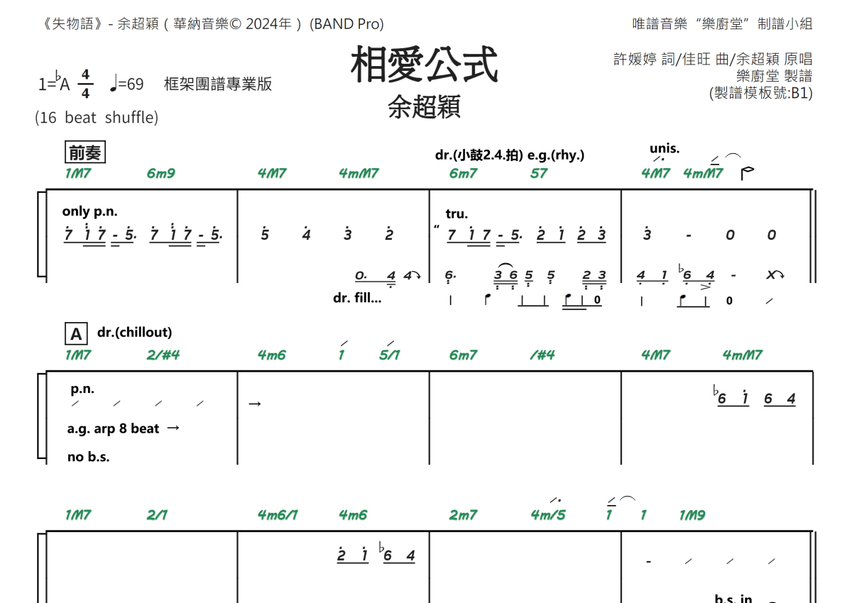 余超颖《相爱公式》乐队总谱 - 框架团谱版