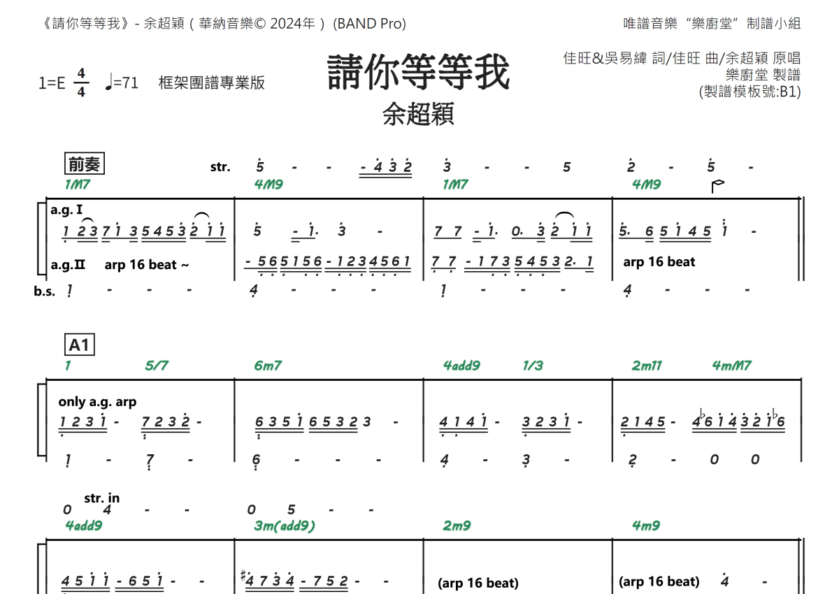 余超颖《请你等等我》乐队总谱 - 框架团谱版