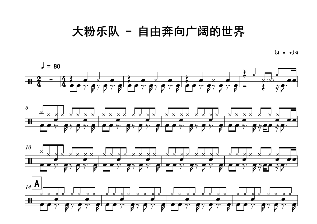 大粉乐队《自由奔向广阔的世界》架子鼓谱