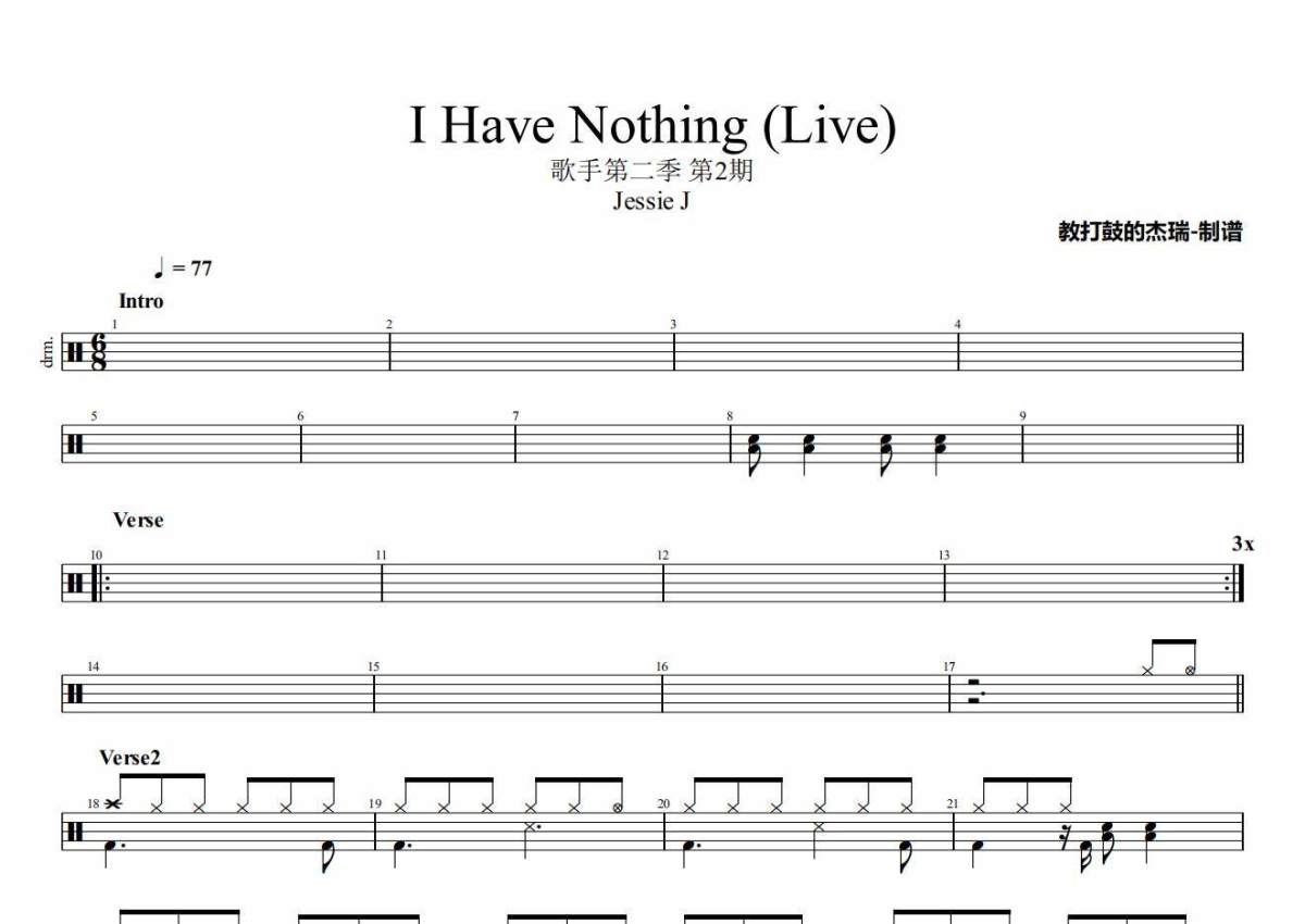 Jessie J《I Have Nothing (Live)》架子鼓谱 - 歌手第二季 第2期
