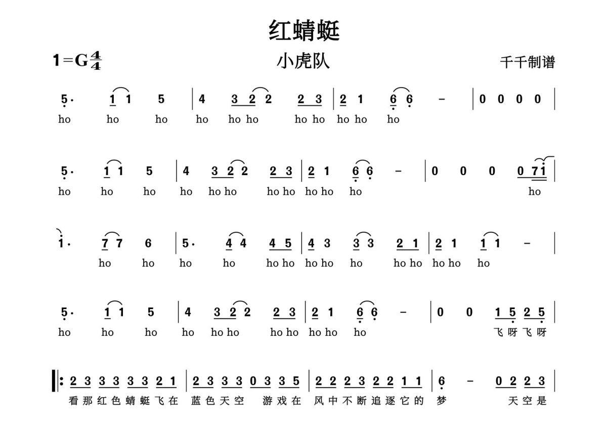 《红蜻蜓》是小虎队演唱的一首歌曲,拍号为4/4拍,这份简谱共有两张高清图谱,图谱由 @千千 编配上传。