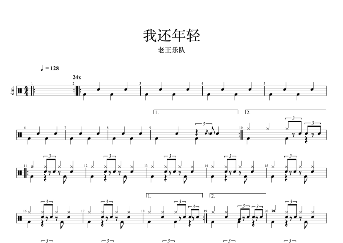 老王乐队《我还年轻》架子鼓谱