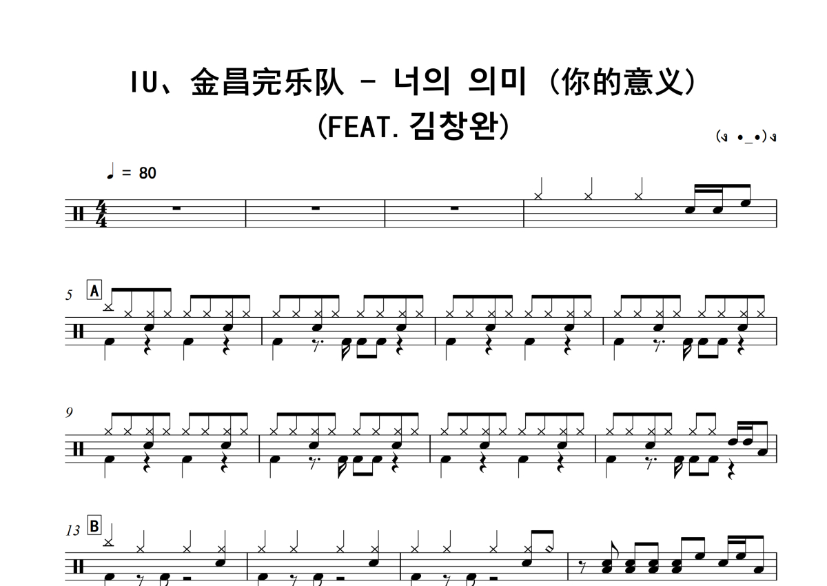 IU、金昌完乐队《너의 의미 (你的意义) (FEAT.김창완)》架子鼓谱 - 改编版