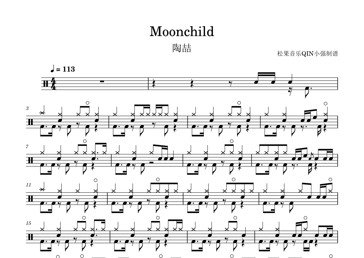 《MOONCHILD》是陶喆演唱的一首歌曲,拍号为4/4拍,这份架子鼓谱共有三张高清图谱,图谱由 @松果音乐QIN小强 编配上传,图谱使用五线谱编配,使用这份MOONCHILD架子鼓谱,你将能够轻松地敲打出这首陶喆的MOONCHILD,快来尝试吧。《MOONCHILD》是陶喆演唱的歌曲,发布于2025年4月15日。