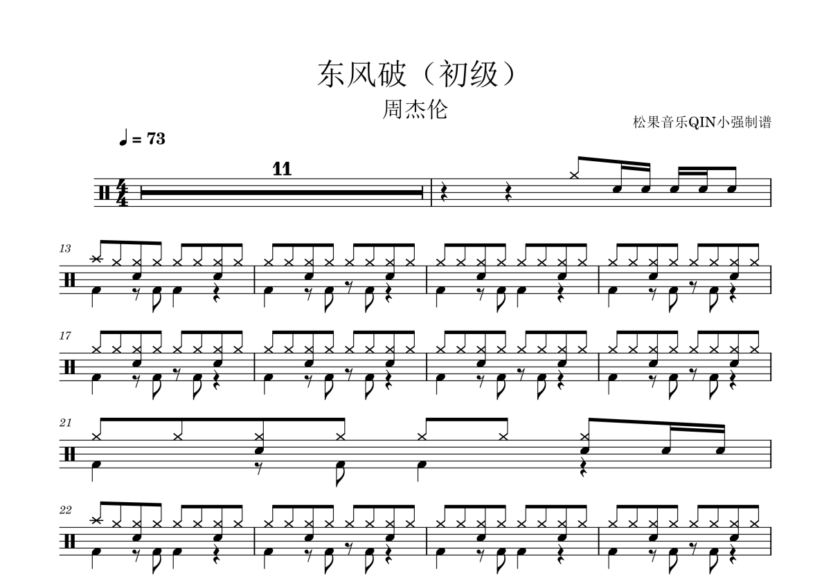 周杰伦《东风破(初级)》架子鼓谱