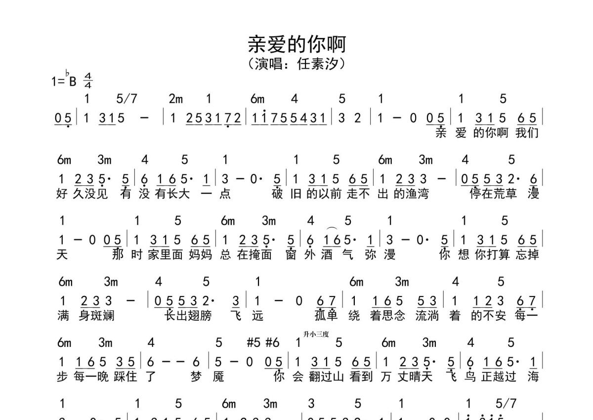 《亲爱的你啊》是任素汐演唱的一首歌曲,拍号为4/4拍,这份简谱共有一张高清图谱,图谱由 @SRV7758521 编配上传。