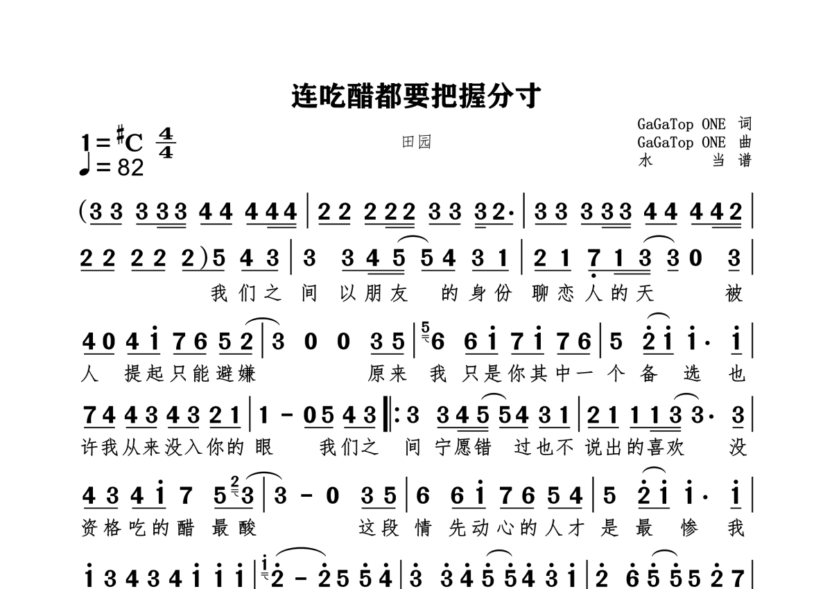 连吃醋都要把握分寸简谱 - 田园演唱