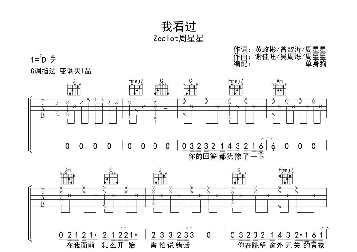 Zealot周星星《我看过》吉他谱 - C调弹唱六线谱