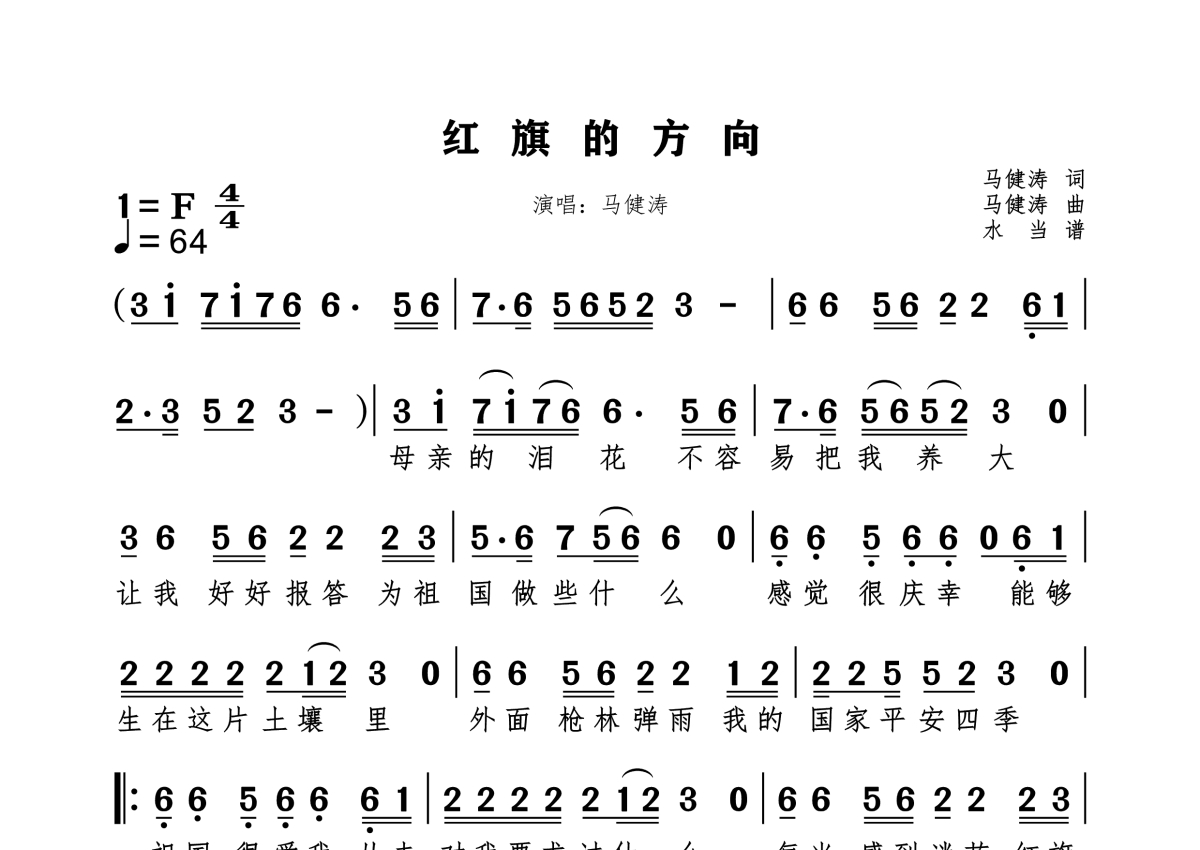 红旗的方向简谱 - 马健涛演唱