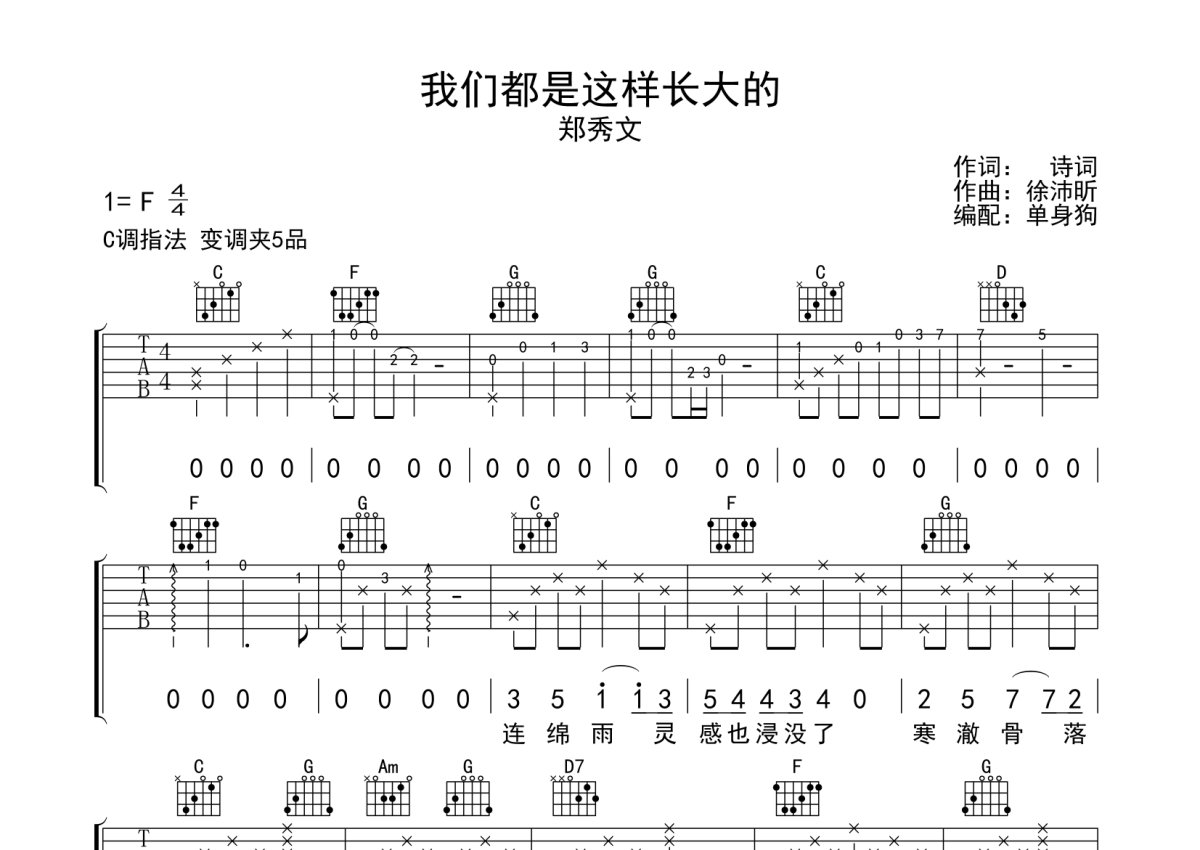 郑秀文《我们都是这样长大的》吉他谱 - C调弹唱六线谱